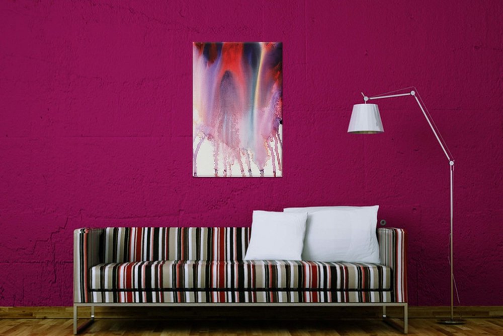 Plátno je ručne natiahnuté na napínaci rám /blindrám/. Plátno štandardne napíname na drevené Blind rámy, ktoré sa dajú priamo zavesiť.