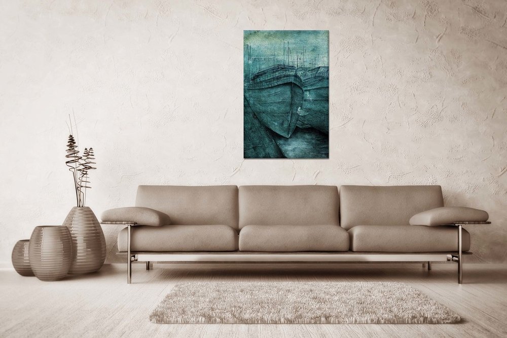 Plátno je ručne natiahnuté na napínaci rám /blindrám/. Plátno štandardne napíname na drevené Blind rámy, ktoré sa dajú priamo zavesiť.