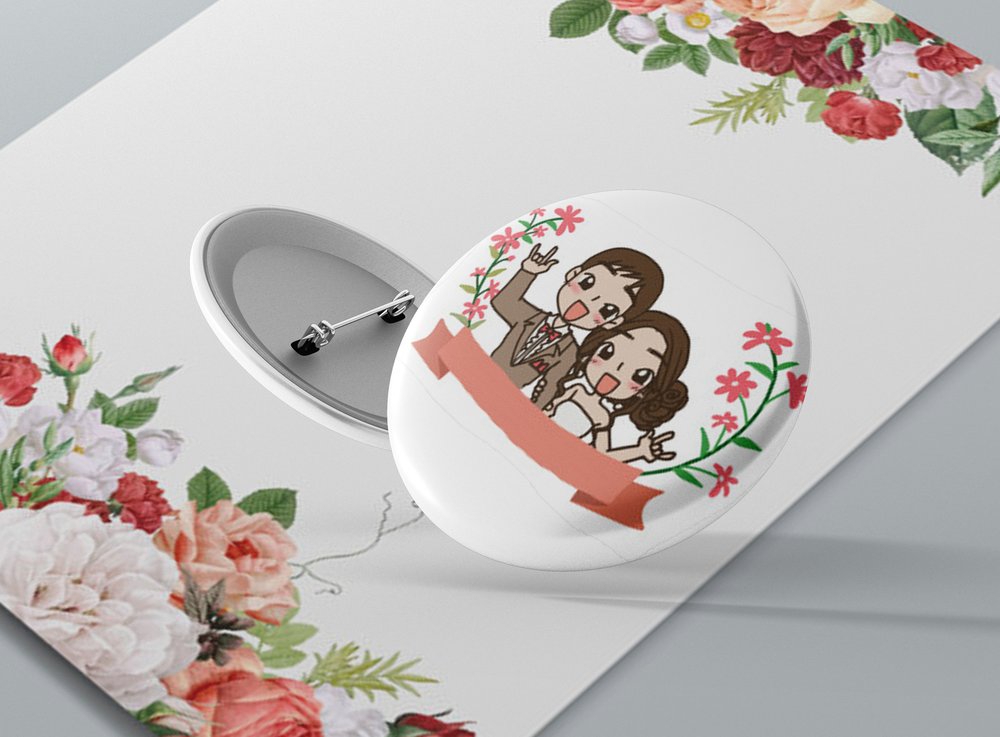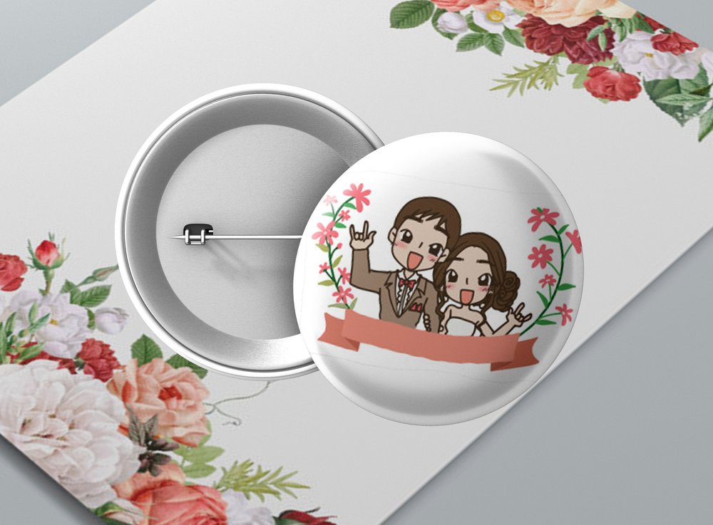 Okrúhle kovové odznaky so zatváracím špendlíkom sú vhodným suvenírom, ktorý môžete pripnúť na odev či batoh. Odznak je vypuklý a pôsobí 3D dojmom. Odznaky pre svadobčanov - milá alternatíva svadobných pierok. Odznak môžete pripnúť na akékoľvek miesto odevu, bez nejakého poškodenia textílie.