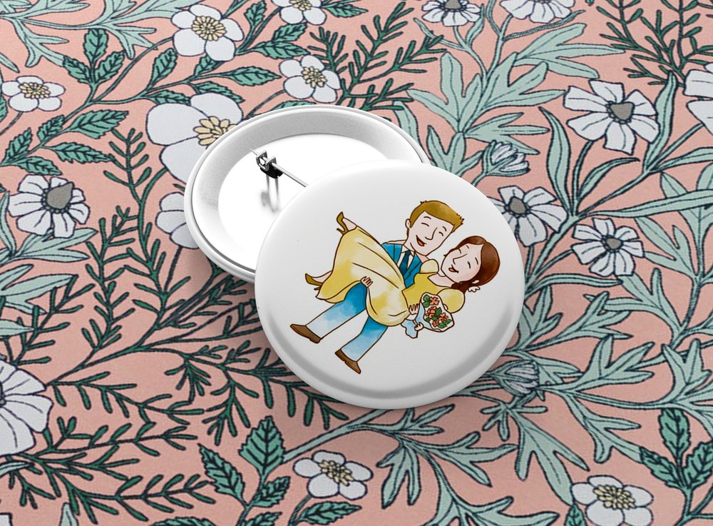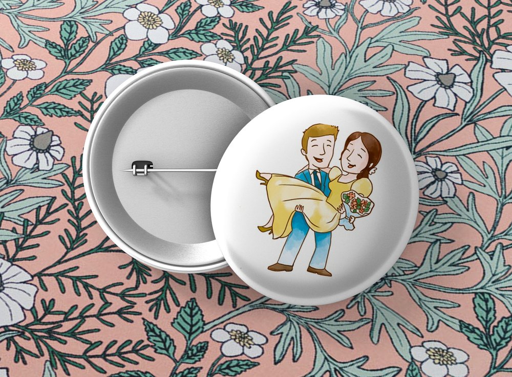 Okrúhle kovové odznaky so zatváracím špendlíkom sú vhodným suvenírom, ktorý môžete pripnúť na odev či batoh. Odznak je vypuklý a pôsobí 3D dojmom. Odznaky pre svadobčanov - milá alternatíva svadobných pierok. Odznak môžete pripnúť na akékoľvek miesto odevu, bez nejakého poškodenia textílie.