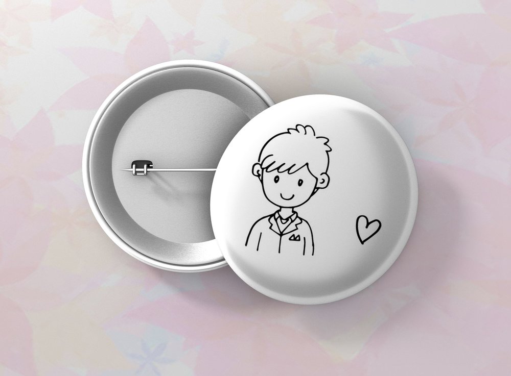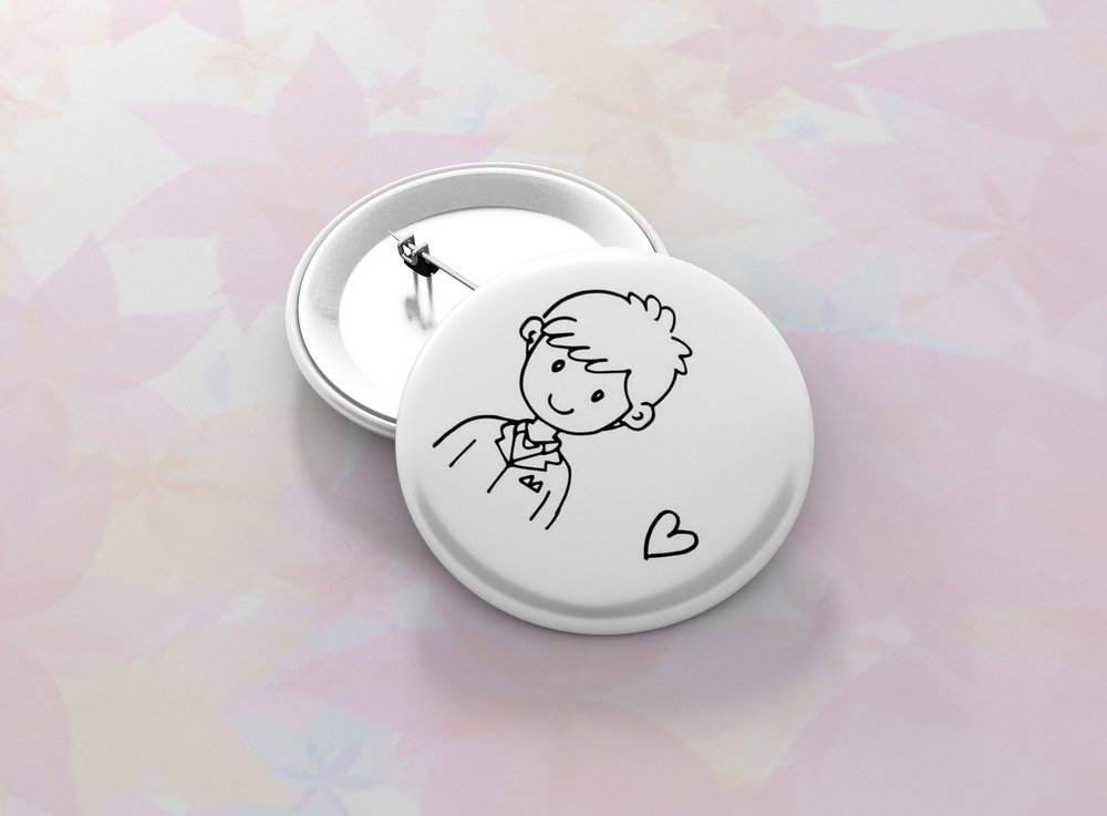Okrúhle kovové odznaky so zatváracím špendlíkom sú vhodným suvenírom, ktorý môžete pripnúť na odev či batoh. Odznak je vypuklý a pôsobí 3D dojmom. Odznaky pre svadobčanov - milá alternatíva svadobných pierok. Odznak môžete pripnúť na akékoľvek miesto odevu, bez nejakého poškodenia textílie.