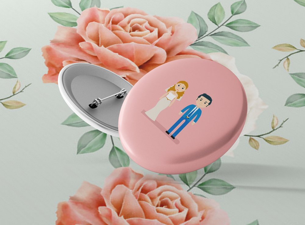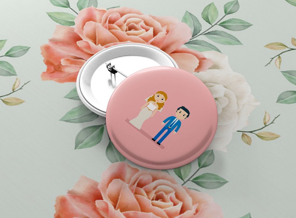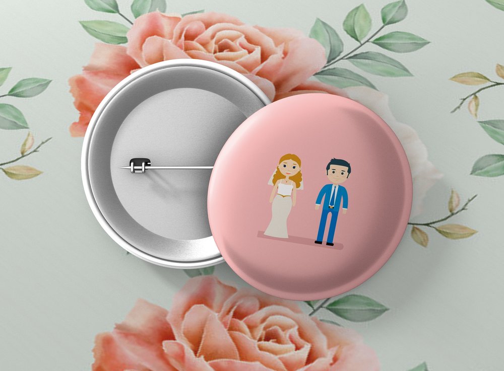 Okrúhle kovové odznaky so zatváracím špendlíkom sú vhodným suvenírom, ktorý môžete pripnúť na odev či batoh. Odznak je vypuklý a pôsobí 3D dojmom. Odznaky pre svadobčanov - milá alternatíva svadobných pierok. Odznak môžete pripnúť na akékoľvek miesto odevu, bez nejakého poškodenia textílie.