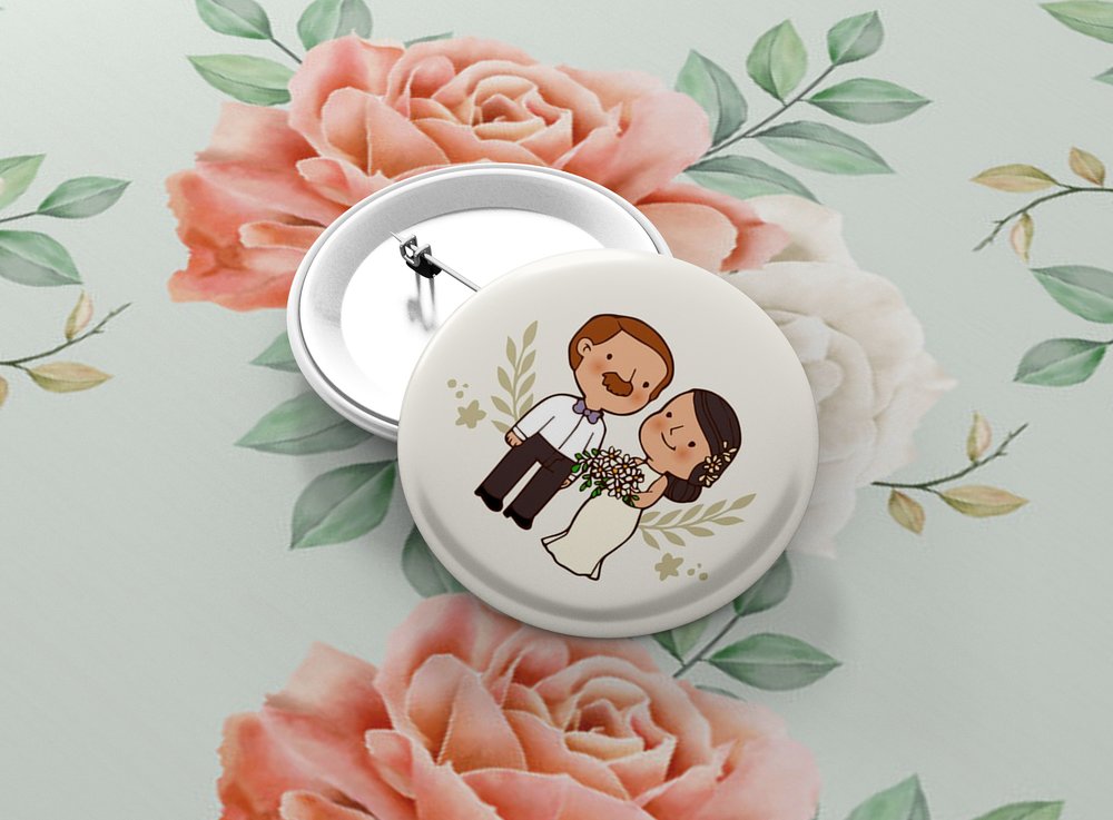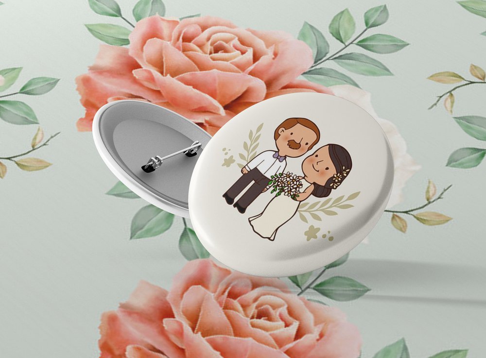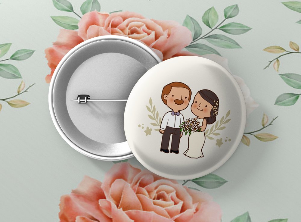 Okrúhle kovové odznaky so zatváracím špendlíkom sú vhodným suvenírom, ktorý môžete pripnúť na odev či batoh. Odznak je vypuklý a pôsobí 3D dojmom. Odznaky pre svadobčanov - milá alternatíva svadobných pierok. Odznak môžete pripnúť na akékoľvek miesto odevu, bez nejakého poškodenia textílie.