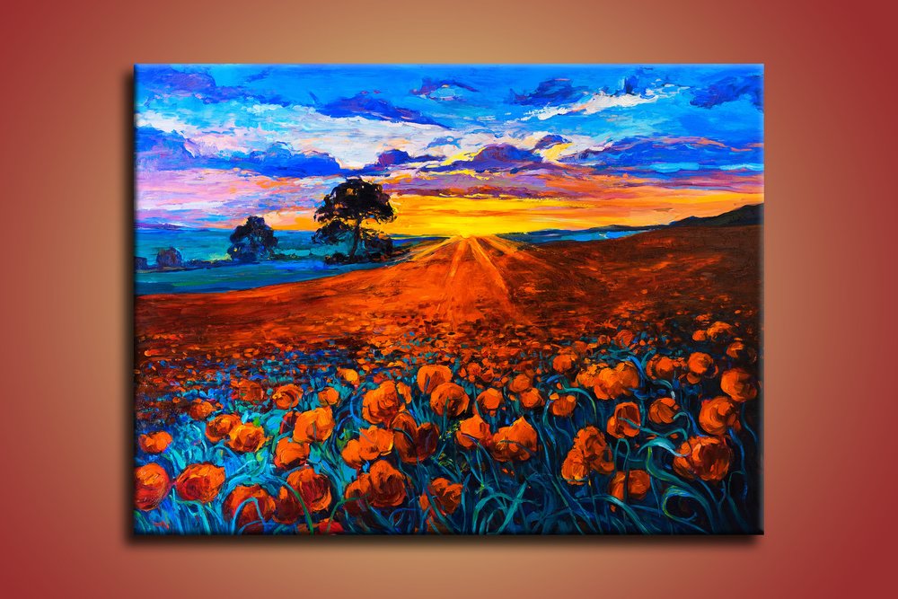 Maľované obrazy: originálny motív namaľovaný na kvalitnom plátne, ktoré je natiahnuté na drevenom ráme.